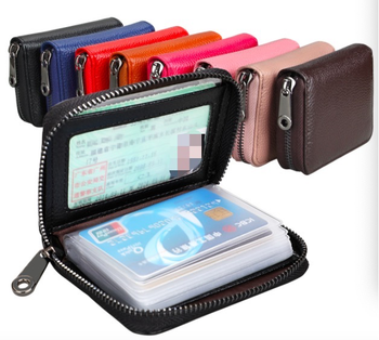 RFID zipper PU Leather Credit Card Holder Wallet for Men Women business card holder bag custom embossed logo