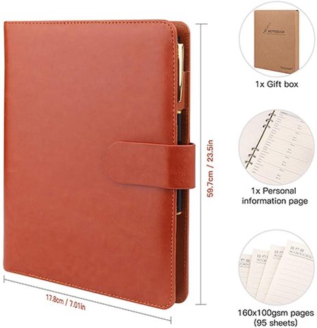 Bağlayıcı 6 halka dizüstü A5 deri not dergisi/doldurulabilir gevşek yaprak iş özel kabartmalı logo belge dosya klasörü klasörü